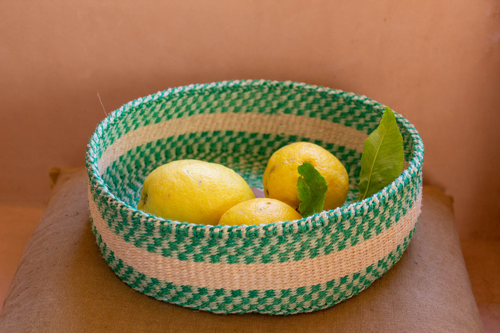 Cesta africana Tiny Pakurigo verde y rosa de fibra natural -