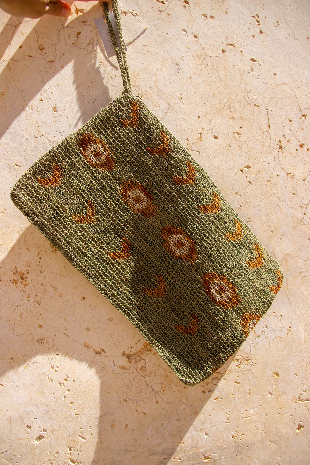 Cesta africana Tiny Pakurigo verde y rosa de fibra natural -