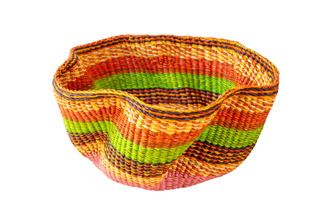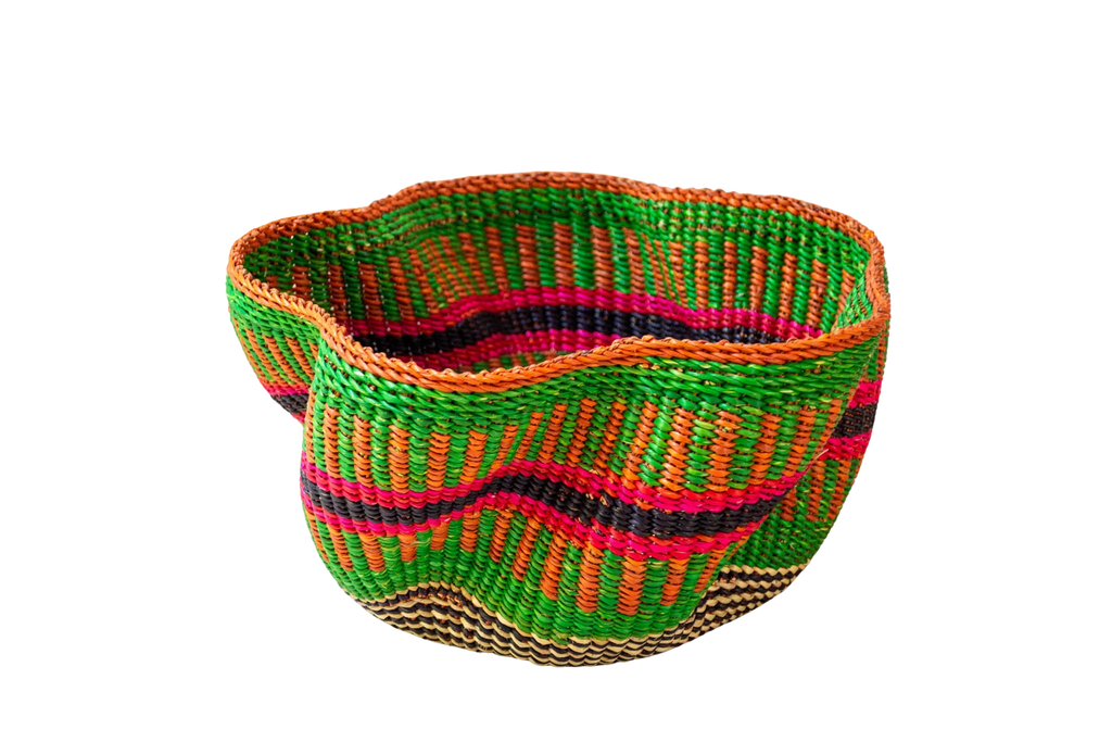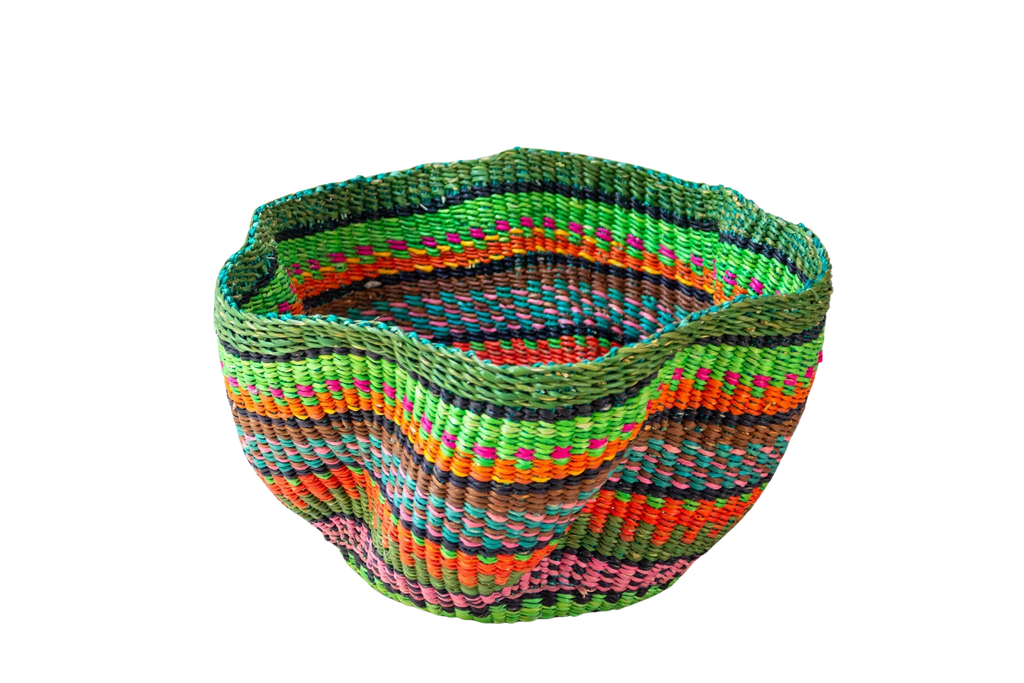 Cesta africana Tiny Pakurigo verde y rosa de fibra natural -