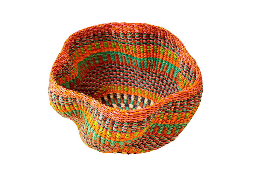 Cesta africana Tiny Pakurigo turquesa y naranja de fibra natural -
